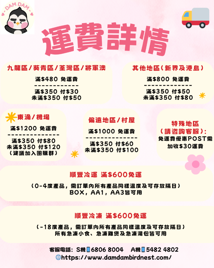 送貨時間段:(12-3pm/ 3-6pm/ 6-9pm 或 即日付款後4小時內送達)